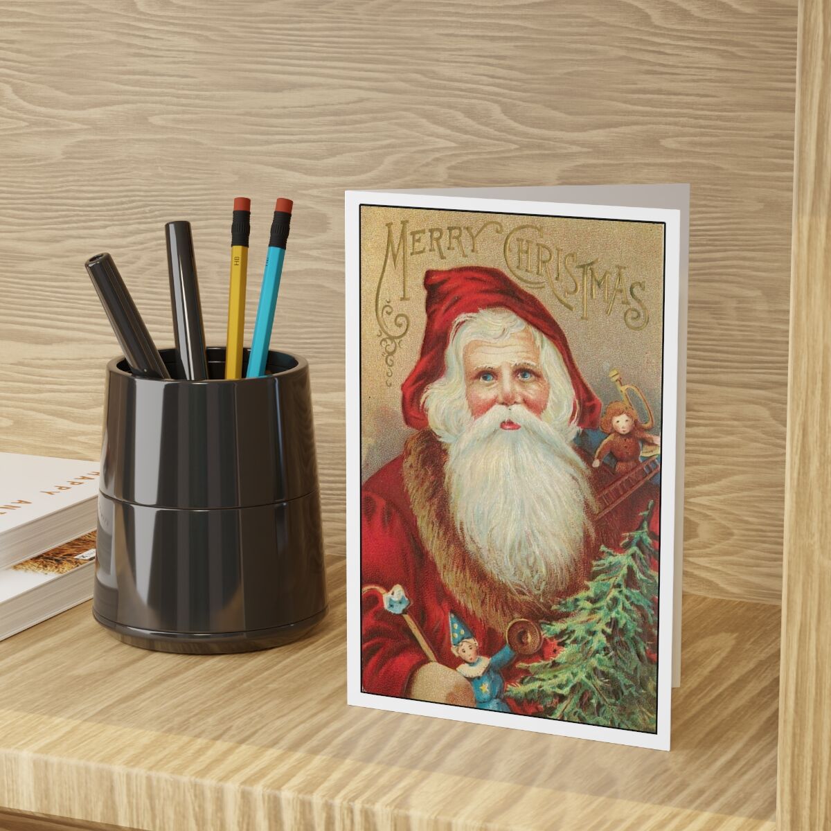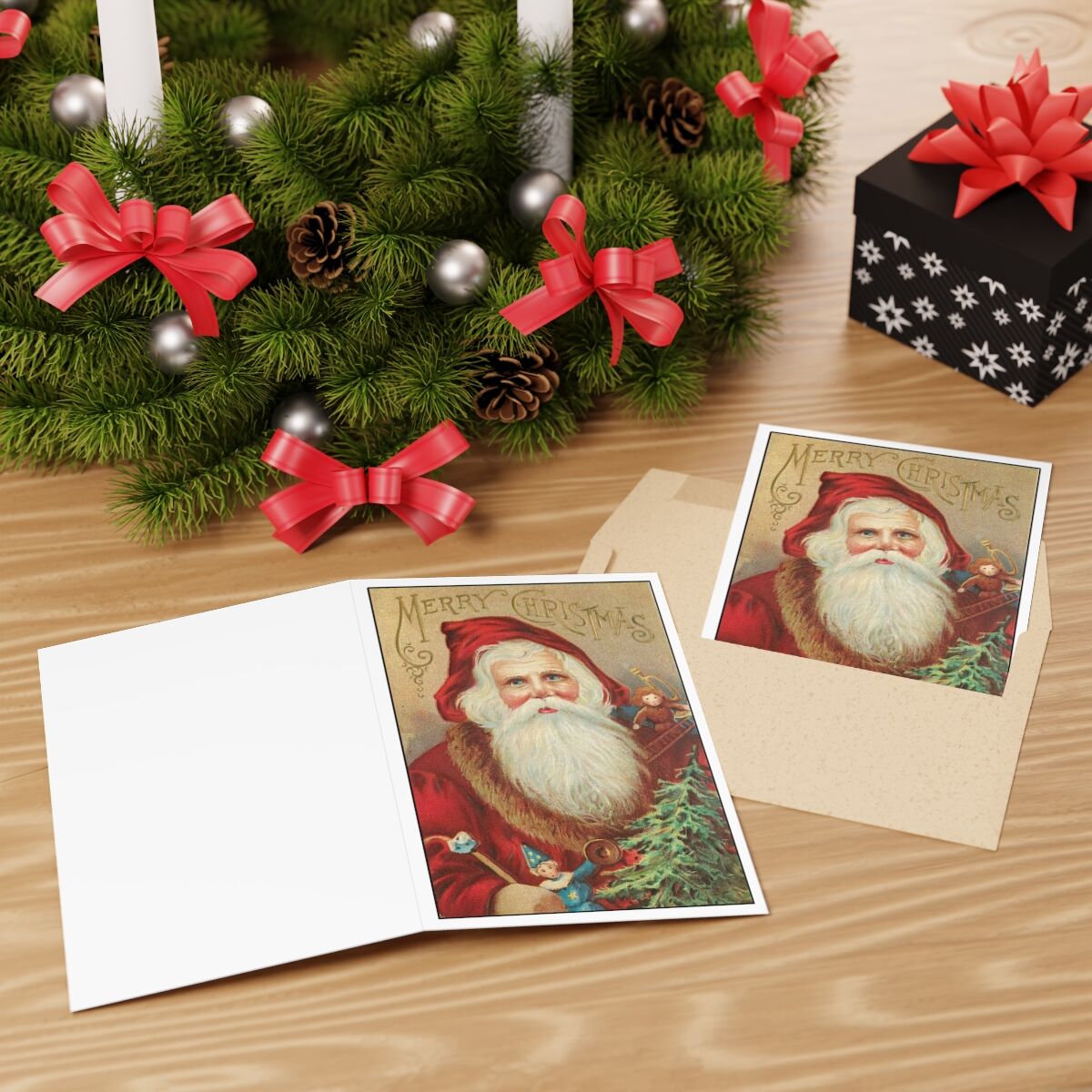 Vintage Themed Christmas Greeting Cards – Nostalgic Holiday Wishes with Antique Santa Clause Postcard Print