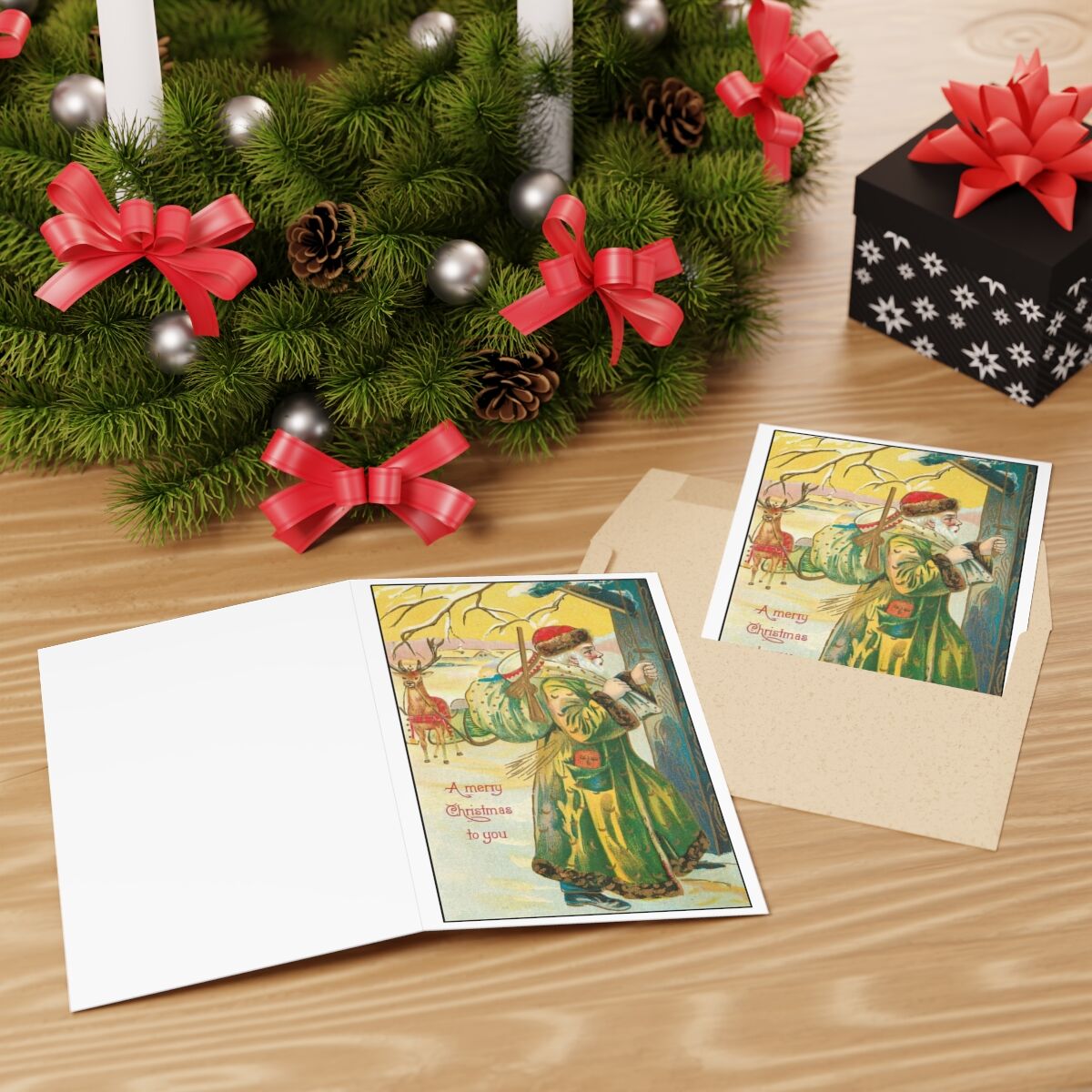 Vintage Themed Christmas Greeting Cards – Nostalgic Holiday Wishes with Antique Santa Clause Postcard Print