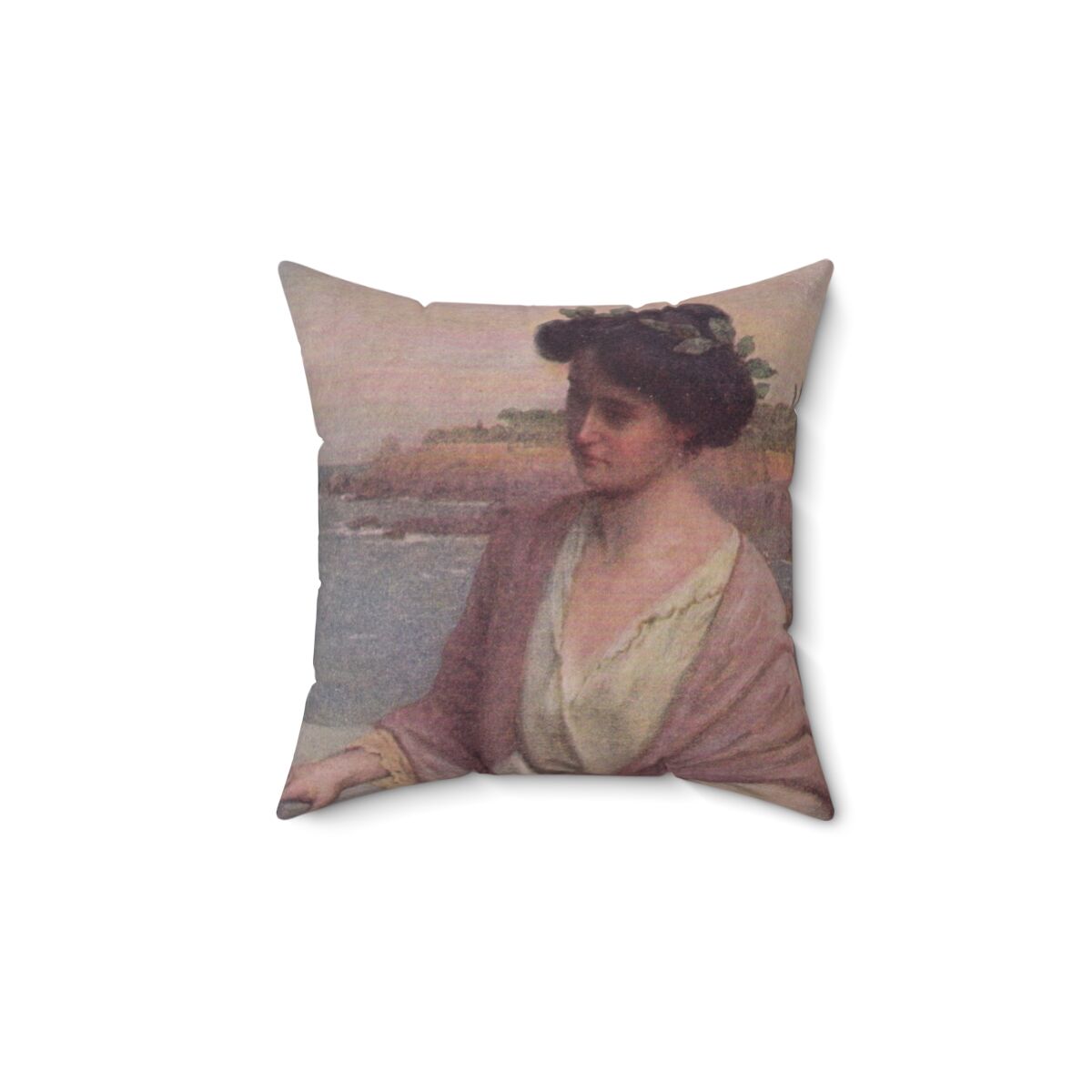 Vintage Themed Faux Suede Square Pillow with Beautiful Sappho Antique Postcard Print